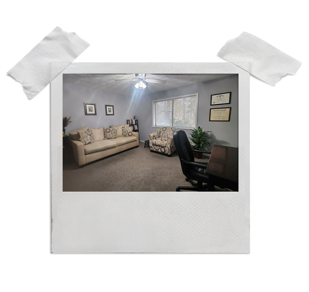 My office is an updated 1977 house close to downtown Suwanee. Walk in the front door, and you will feel at home. When you come in, please have a seat in the reception area until I come get you.
